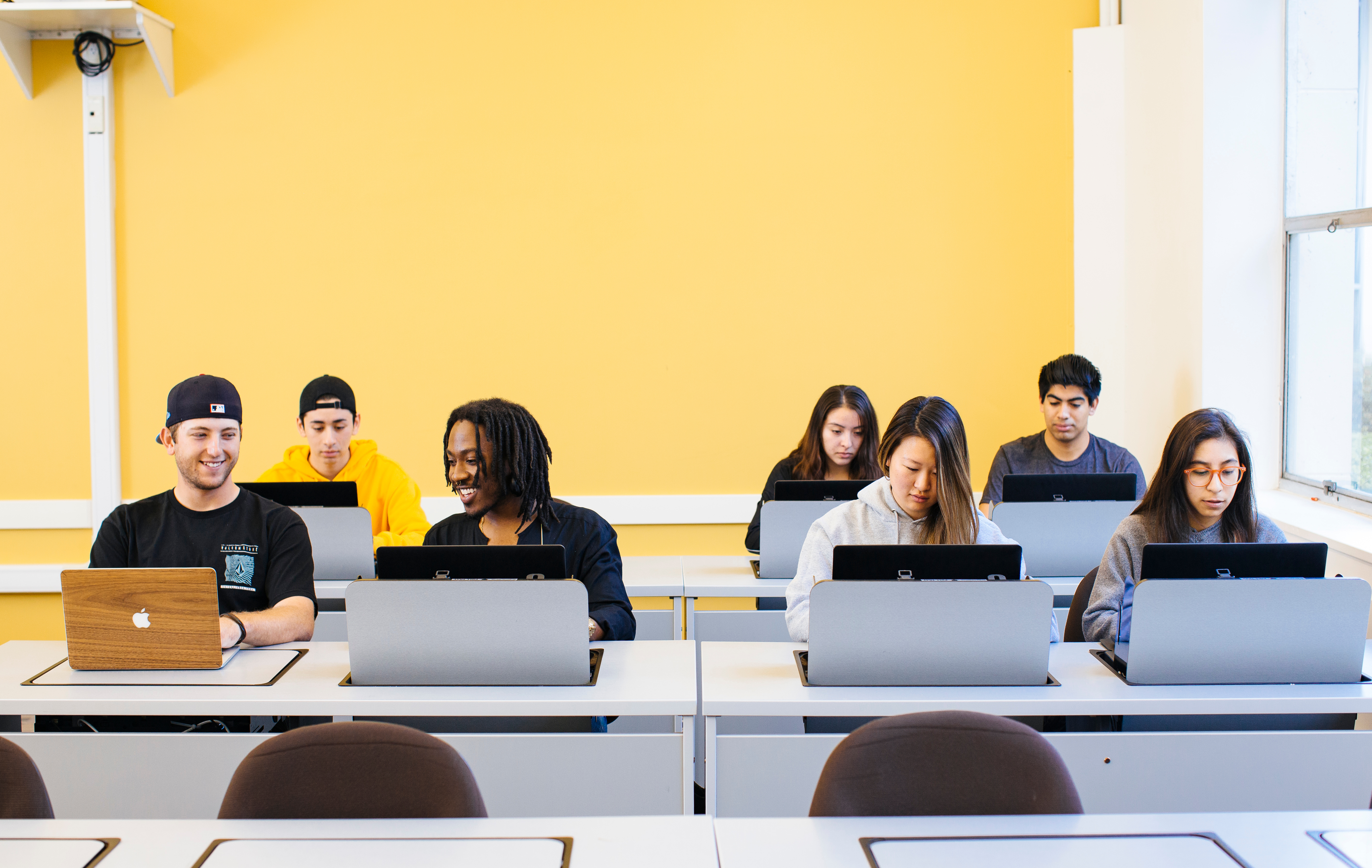 Students with computers in classroom